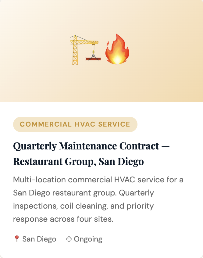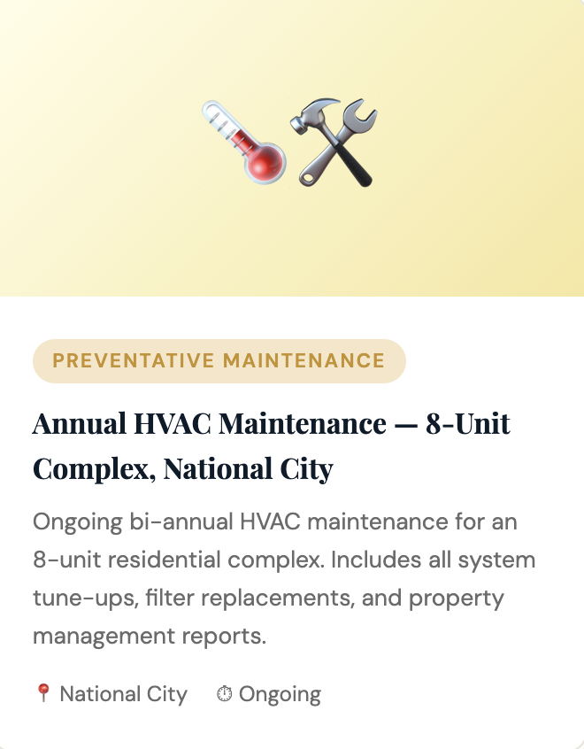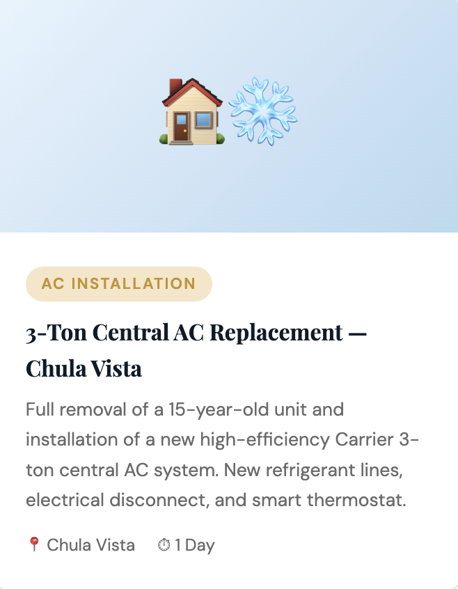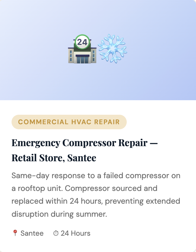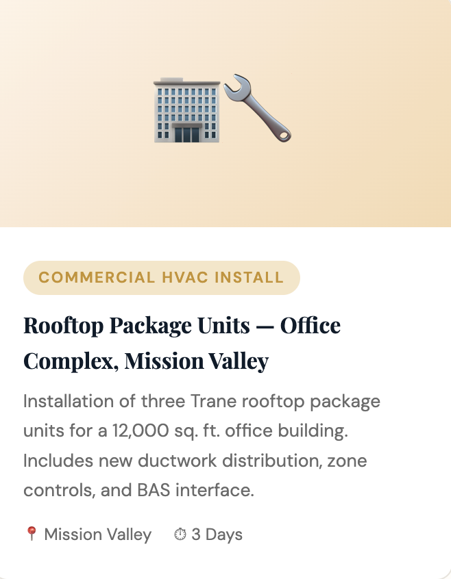 Browse recent HVAC installations, repairs and commercial projects completed across San Diego and surrounding cities.